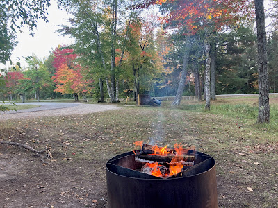 We had hoped to camp in Soldier Lake Campground for this stay; however, that campground had already closed for the season. The information for Three Lakes Campground says it has sites for up to a 20' trailer, and ours is 25'. People we had met when camping in Brevoort Lake National Forest Campground told us the sites are large, so we decided to check it out. This campground is easy to access from M-28, and all of the roads are paved. Our 25' trailer could have easily fit on most of the sites in this campground. The facility map for this campground is not correct at the time of this post, and some of the website photos are incorrect, as well. I have shared information about that farther down in this post.